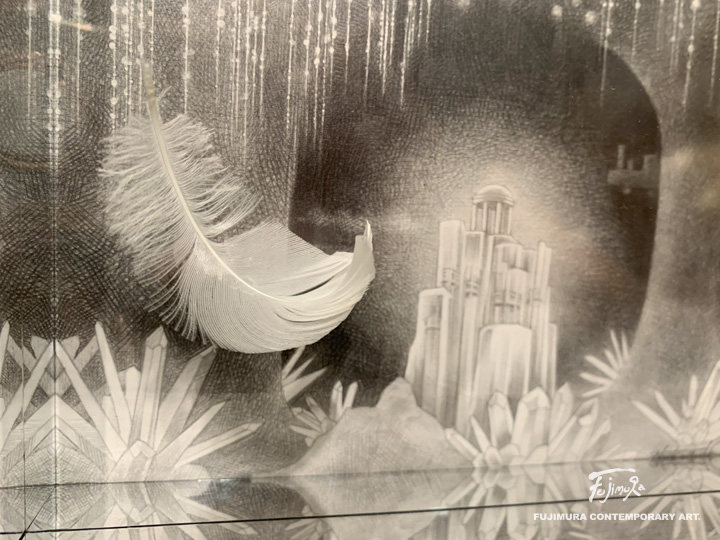 ここでは、モノクロの中に潜む鉛筆の色と光を追求。人工的な「光」を人間が得られたのはつい最近のこと…作品に照らす一筋の光は作品内の見えなかったものを映し出すという特別な効果をもたらし、観る者を歓喜させる深みある作品。